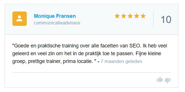 Veel SEO-trainingen zijn technisch en complex. Als gediplomeerd docent weet ik hoe mensen het beste leren. Daarom is de training op de eerste plaats praktisch. Een deelnemer zei ooit dankbaar: “Bij een concurrent leerde ik wat ChatGPT is is en wat kan. Bij jou hoe ik het toepas.”